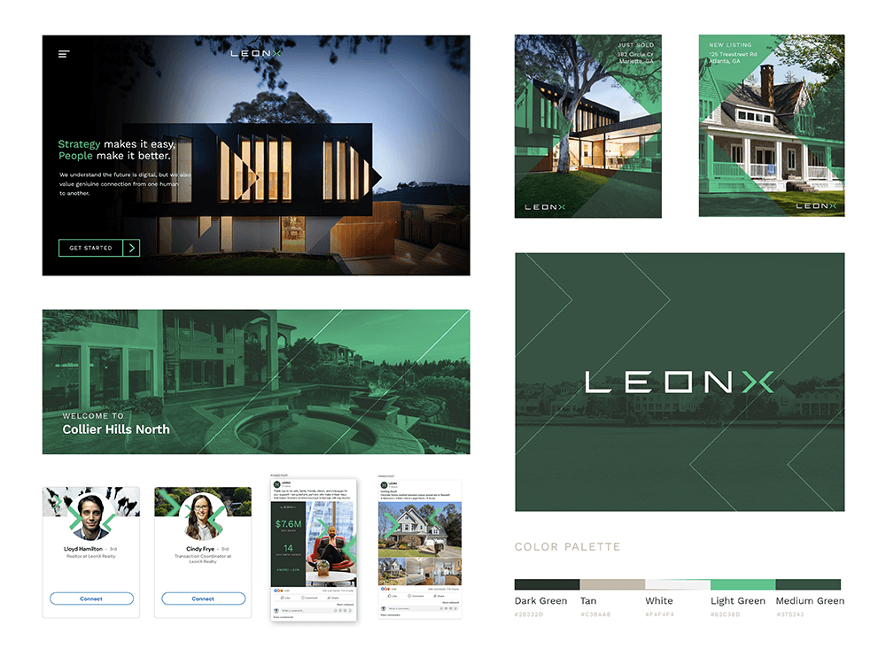 Leonx is a boutique real estate brokerage in Atlanta operating at the intersection of technology and human expertise. The brief called for a brand that communicated luxury, sophistication, and forward-thinking innovation while remaining deeply personal and client-centric. The challenge was creating an identity that felt contemporary and confident, positioning Leonx as a premium player in an oversaturated market.